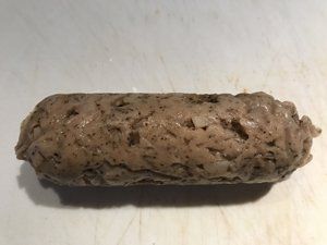 Divide the dough into 4 even parts. Place one quarter of the dough into the middle of one of the pieces of your prepared foil. Do your best to shape it into a log about 5 inches long. Don't worry if it looks a mess, the sausage will tidy up as it cooks. Now fold the foil over the dough and roll it up tightly. Finally twist each end of the foil to seal it making it look like a giant piece of mystery candy. Repeat this for your remaining 3 parts of your dough.