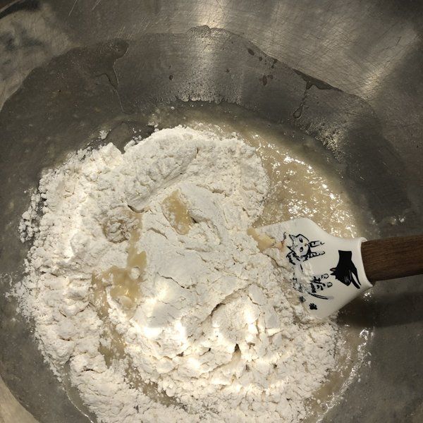 In a medium bowl combine the flour, baking soda, baking powder and salt and whisk together.