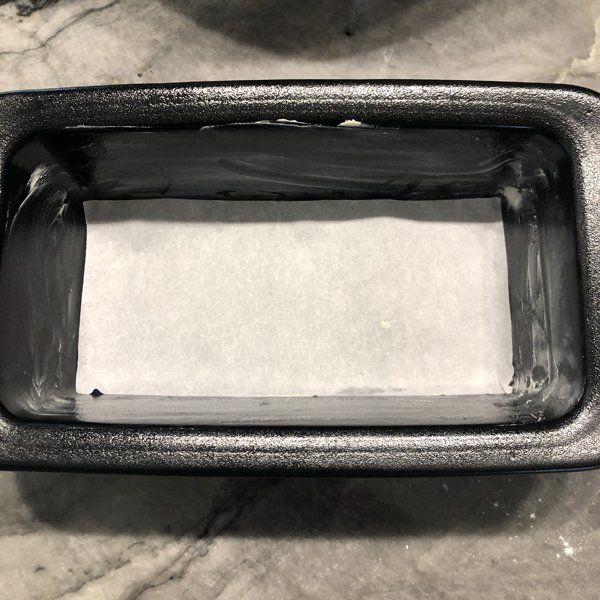 Grease the sides of a 9" loaf pan and line the bottom with parchment paper.