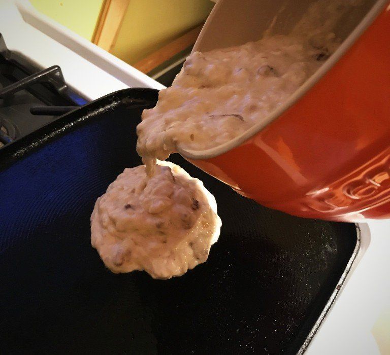 Lightly grease the griddle and pour the batter onto it forming pancakes that are roughly 4 to 5 inches in diameter. Once you start to see the edges of the pancake start to look dry and you see some bubbles coming up to the top, flip the pancake and cook the other side until it's golden brown.