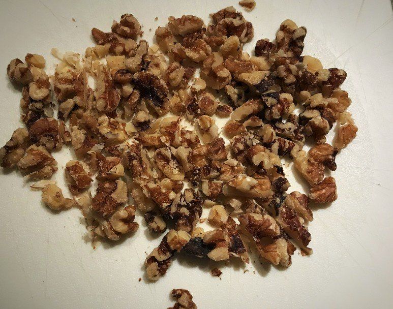 Add the wet ingredients and chopped nuts to the dry ingredients and stir until just combined. (It's ok if you still see some clumps of flour. Only human garbage over mixes pancake batter.)
