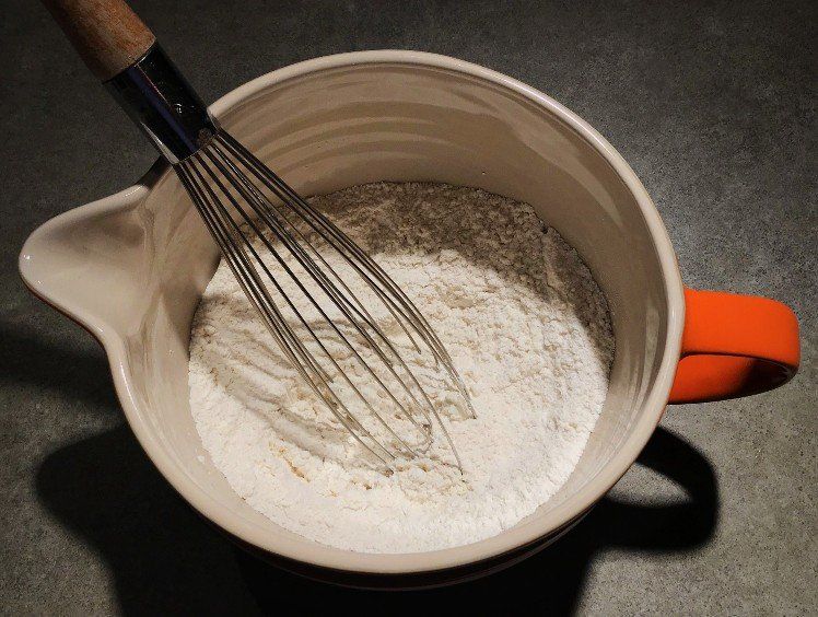 Mix the flour, baking powder, salt, sugar, cinnamon and nutmeg in a large bowl.
