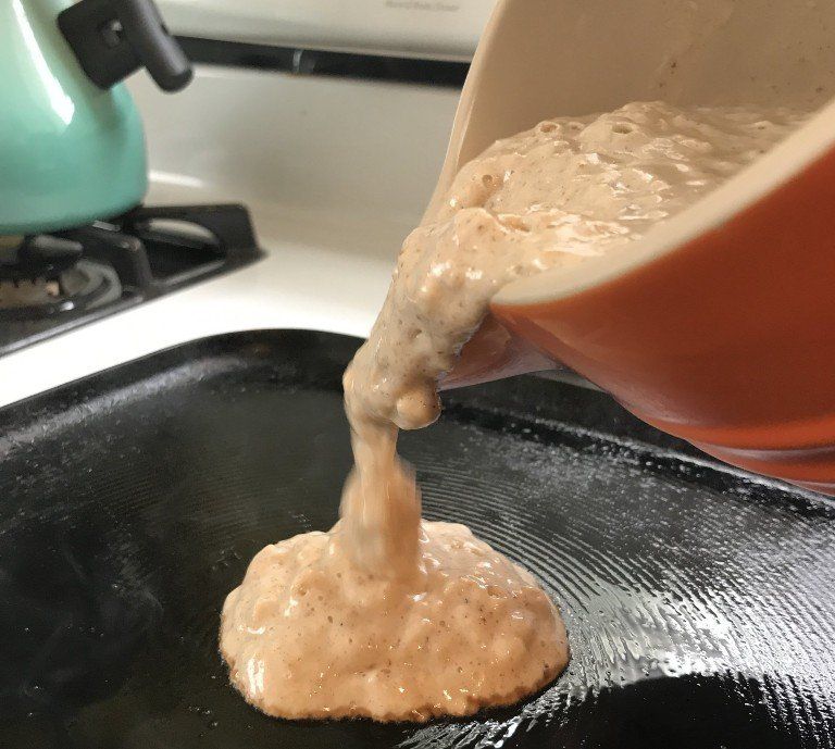 Lightly grease the griddle and pour the batter onto it forming pancakes that are roughly 4 to 5 inches in diameter. Once you see the edges of the pancake start to look dry and you see some bubbles coming up to the top, flip the pancake and cook the other side until it's golden brown.