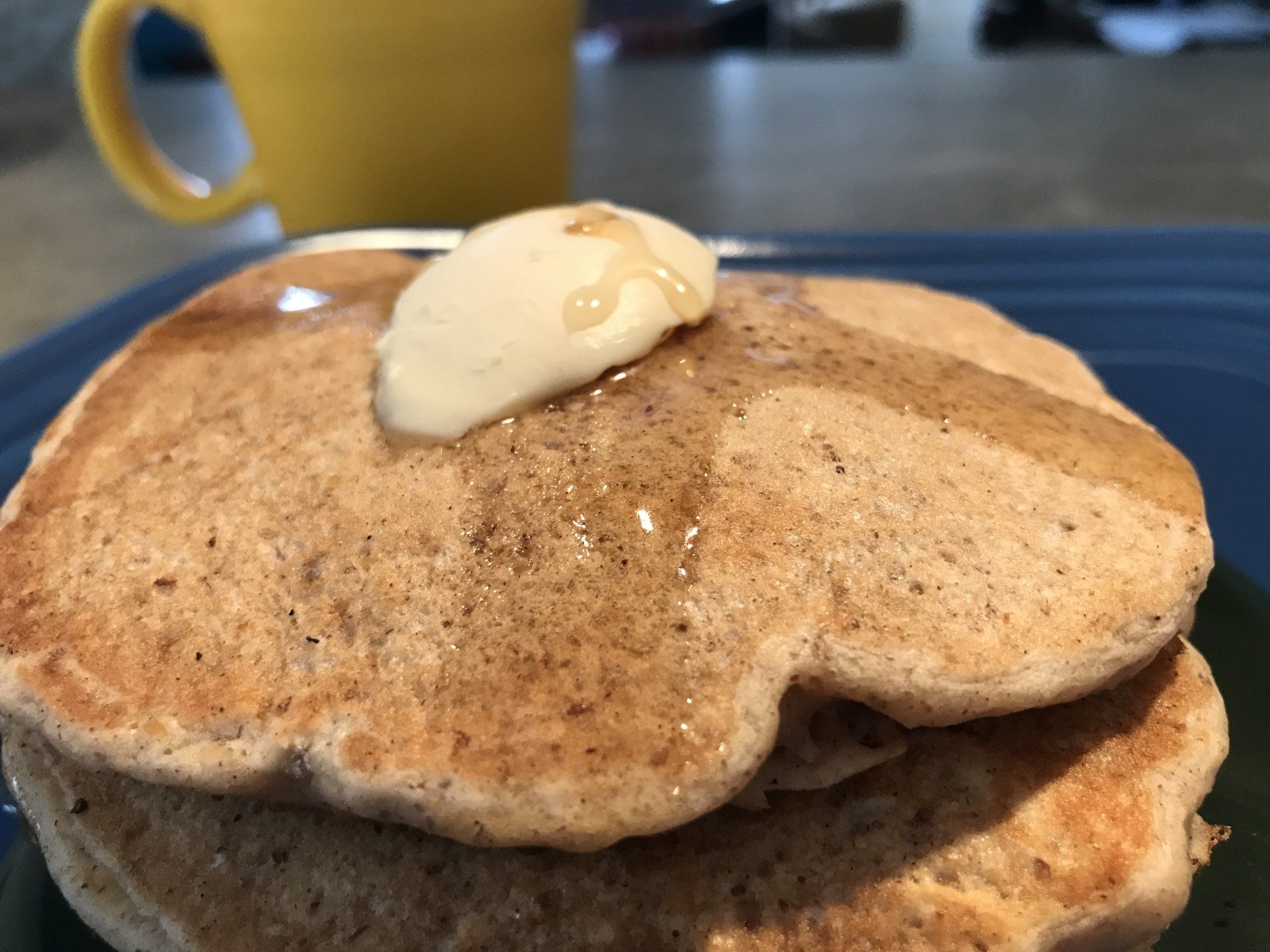 Thanks to this classic blend of warm spices, these pancakes almost trick your palate into thinking it's Thanksgiving time any time of year. These are so flavorful you don't even really need to put syrup on them. I don't want to get on the bad side of "Big Syrup" though so I'll toe the company line and tell you it's your duty to put real maple syrup on all