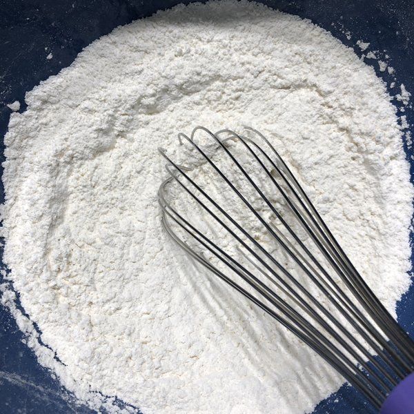 In a large bowl combine the flour, baking powder, baking soda and salt and whisk together.