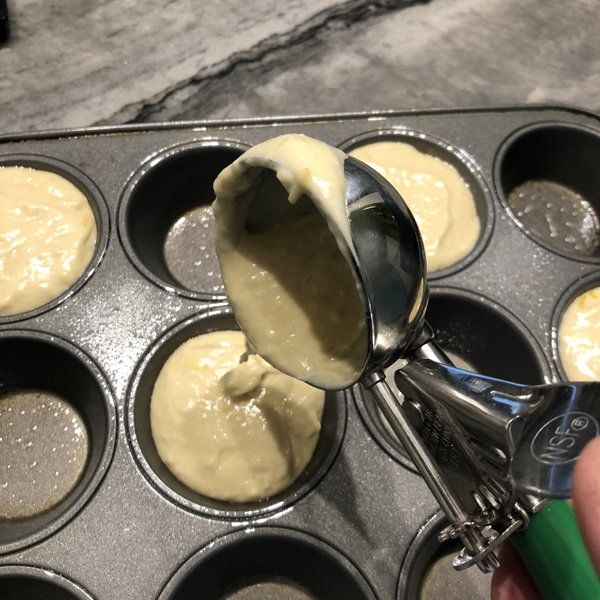 Fill each muffin tin to the top so you'll have a nice "muffin top" when they bake.