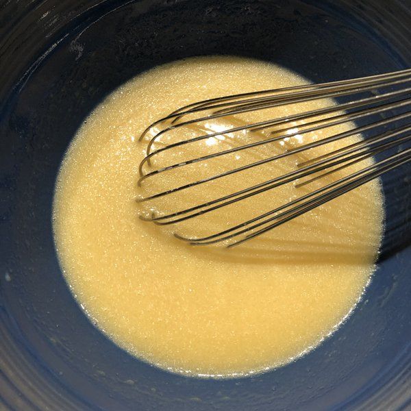 In a medium bowl combine the orange juice, oil, soy milk, sugar and vanilla. Mix together with a whisk until well combined.