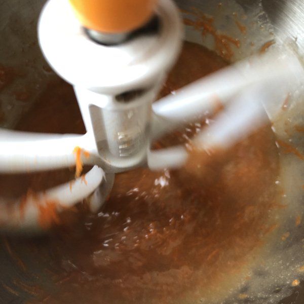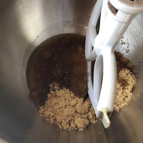 In the bowl of a stand mixer fitted with the paddle attachment (or if you're using a hand mixer that's fine too) combine the brown sugar and oil and beat for about a minute or two to cream together a bit.