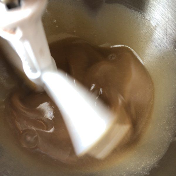 Add the soy milk and vanilla to the sugar mixture and beat until smooth.