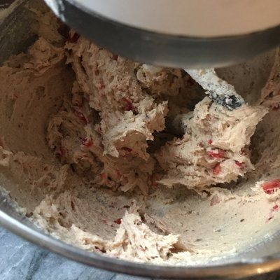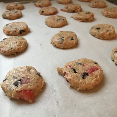 Using a 1oz cookie scoop, scoop out nice round balls of dough and place them on a cookie sheet lined with parchment paper and then press each ball down slightly to flatten the cookie a bit (I just use the palm of my hand after I dampen it a bit). Space the cookies about 2 inches apart (they won't spread much when baked).