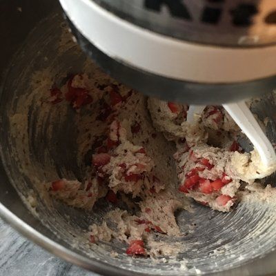 Add the strawberries strawberries to the sugar mixture and beat a few times to combine.