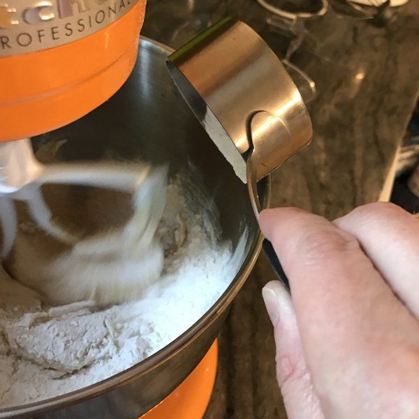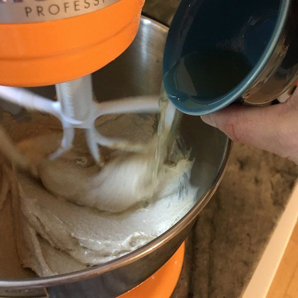 With the mixer on low, add the dry ingredients to the wet in 1/2 cup increments and mix until just combined. (add in the chocolate chips at this point if using)