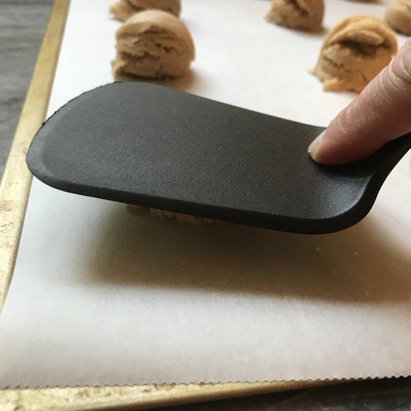 Using a 1oz cookie scoop, scoop out nice round balls of dough and place them on a cookie sheet lined with parchment paper and then press each ball down slightly to flatten the cookie a bit. Don’t press them too hard, you want these to be a thick cookie. Space the cookies about 2 inches apart (they won't spread when baked).