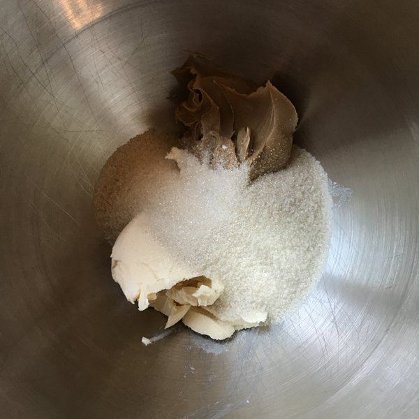In the bowl of a stand mixer fitted with the paddle attachment (or use a large bowl and a hand mixer) combine the margarine, peanut butter and sugar and cream together until smooth.