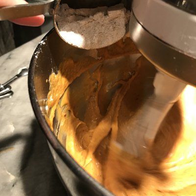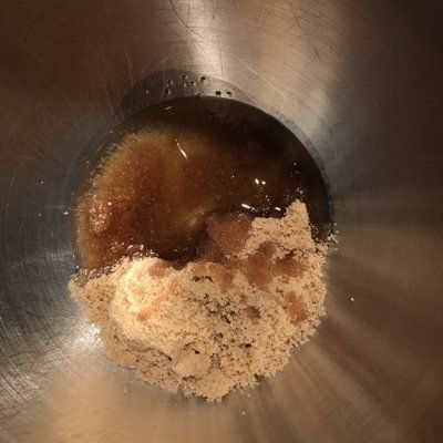 In the bowl of a stand mixer combine the brown sugar and oil and mix with the paddle attachment on medium speed.