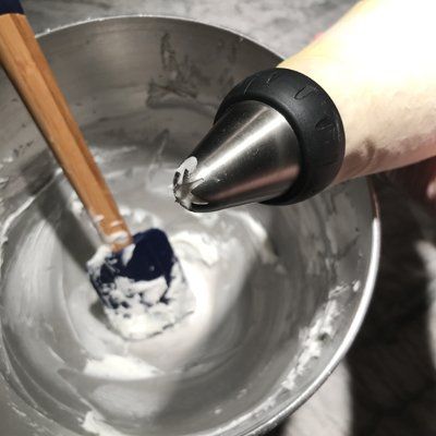 Add the frosting to a pastry bag fitted with a star attachment. (If you don’t have a pastry bag or don’t feel like being too fussy, you can load up a ziplock bag and cut one of the corners off. If you want to be super lazy just use a spoon to dollop on the frosting.)