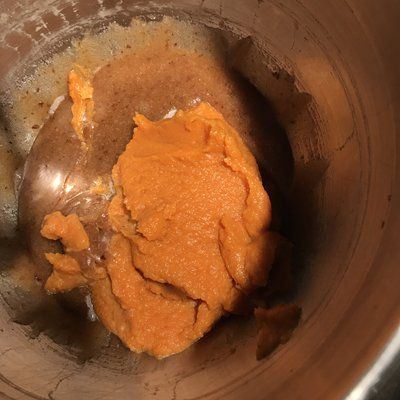 Once the oil and sugar are well combined, add the egg replacer and vanilla and mix until smooth. Add the pumpkin and mix until blended.