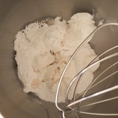 In a stand mixer, combine the powdered sugar, shortening, soy milk and vanilla. With the whip attachment, start to beat the frosting on low and then slowly increase the speed to high. Scrape down the sides and bottom as needed to make sure everything is getting evenly combined. Whip the frosting until it is light and airy (about 5 - 7 minutes).