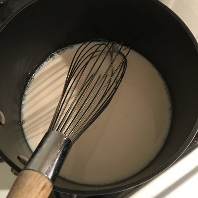 Add in the contents of the blender to the milk and whisk constantly over medium heat until the pastry cream starts to thicken. This will take a couple of minutes.