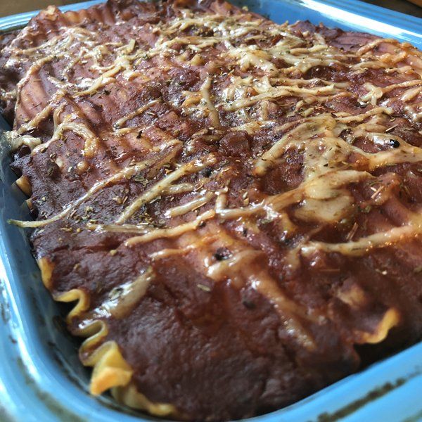 Coat the bottom of the pan with some sauce and then add a layer of noodles so the noodles overlap a bit. Next cover the noodles with about 1/2 of the tofu mixture. Next cover the tofu with some of the sauce. Repeat these step with a second layer and then top it with a final layer of noodles. Completely cover the top layer of noodles with sauce and then sprinkle the remaining vegan mozzarella on top.