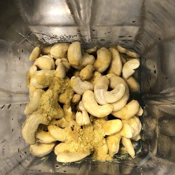 Make the cashew cream by adding the cashews, water, nutritional yeast, lemon juice and salt in a blender and blend until smooth. Scrape down the sides to make sure that all of the nuts are blended and creamy.