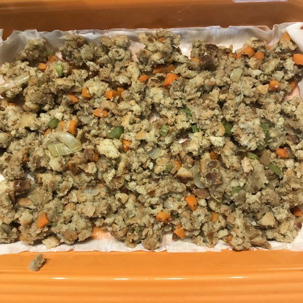 I call this a "lasagna" and mean that only in the loosest way possible. There is no pasta in here, just layers of Thanksgingy goodness.