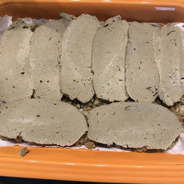 Allow the fake lasagna to rest for about 10 minutes before cutting and serving. Serve it with cranberry sauce (of course) and any other traditional sides you'd like.