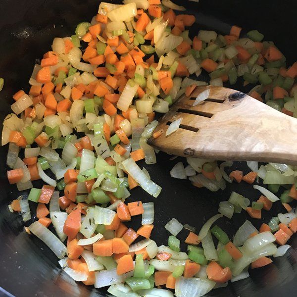 To make the stuffing, heat the oil on medium heat in a large pot or Dutch Oven and then add the onions, carrots and celery. Sauté until the veggies are tender (about 8 - 10 minutes) and then add the sage and thyme and cook for a couple minutes more.